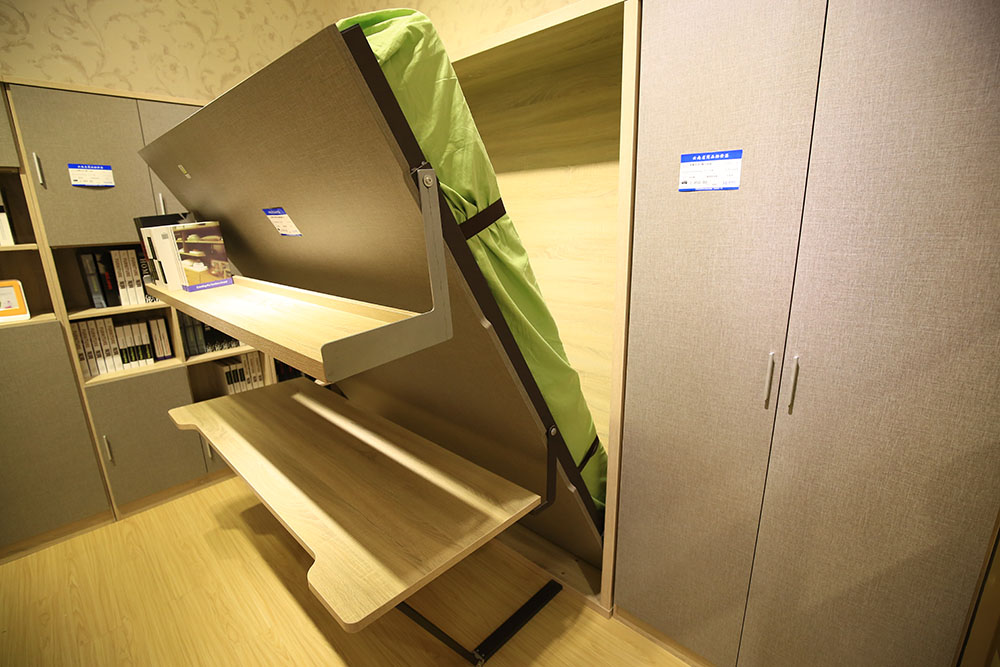 横向书桌正翻功能床