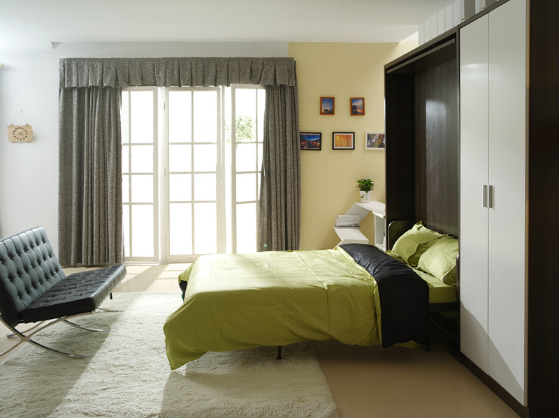 4、操作方便,只需将书柜拉动轻轻旋转,便能轻松变身为睡床,功能转换灵活便捷。