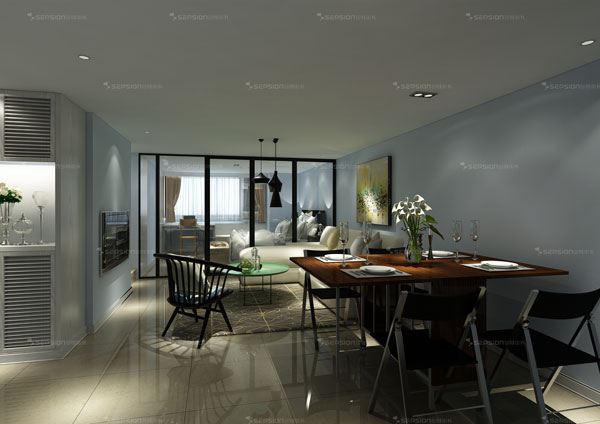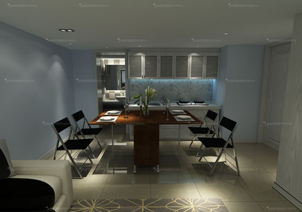 身材娇小的柜体,两边展开后便变成一张4-6人餐桌,柜体内部藏有4张餐椅,同时省下了桌子和椅子的占地空间,将餐厅空间压缩成一个小柜体。