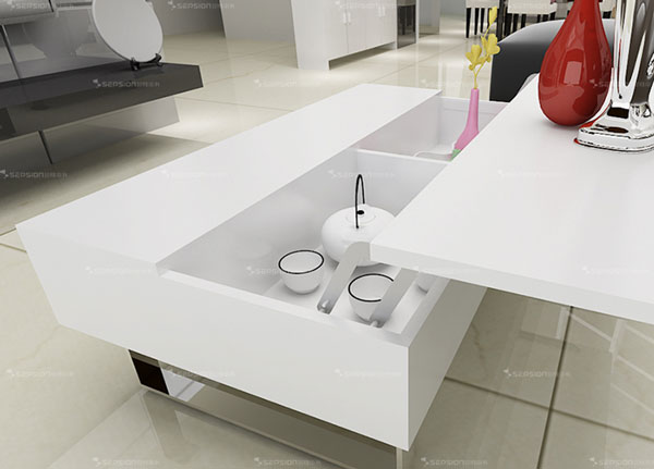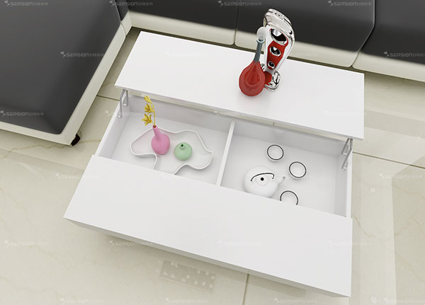 大抽屉设计,创造了宽阔的收纳空间,把茶几内部空间充分利用起来